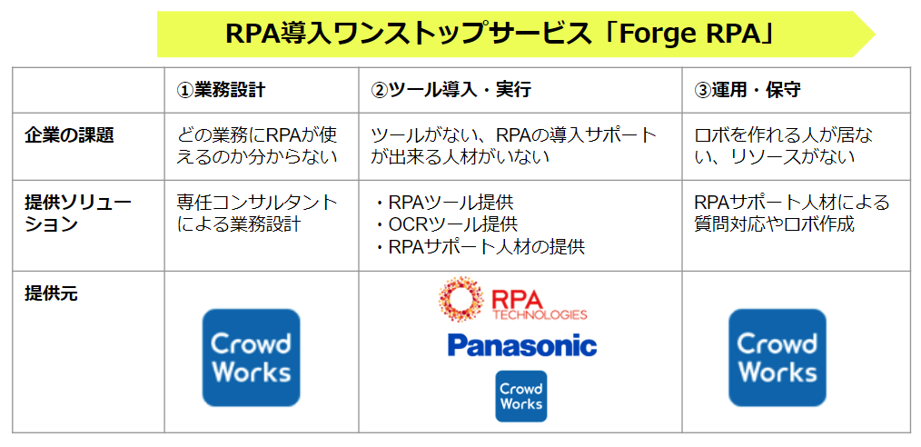 RPAテクノロジーズ、クラウドワークス、パナソニック ソリューションテクノロジー RPA導入ワンストップサービス「Forge RPA」を共同開発